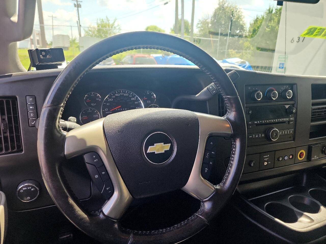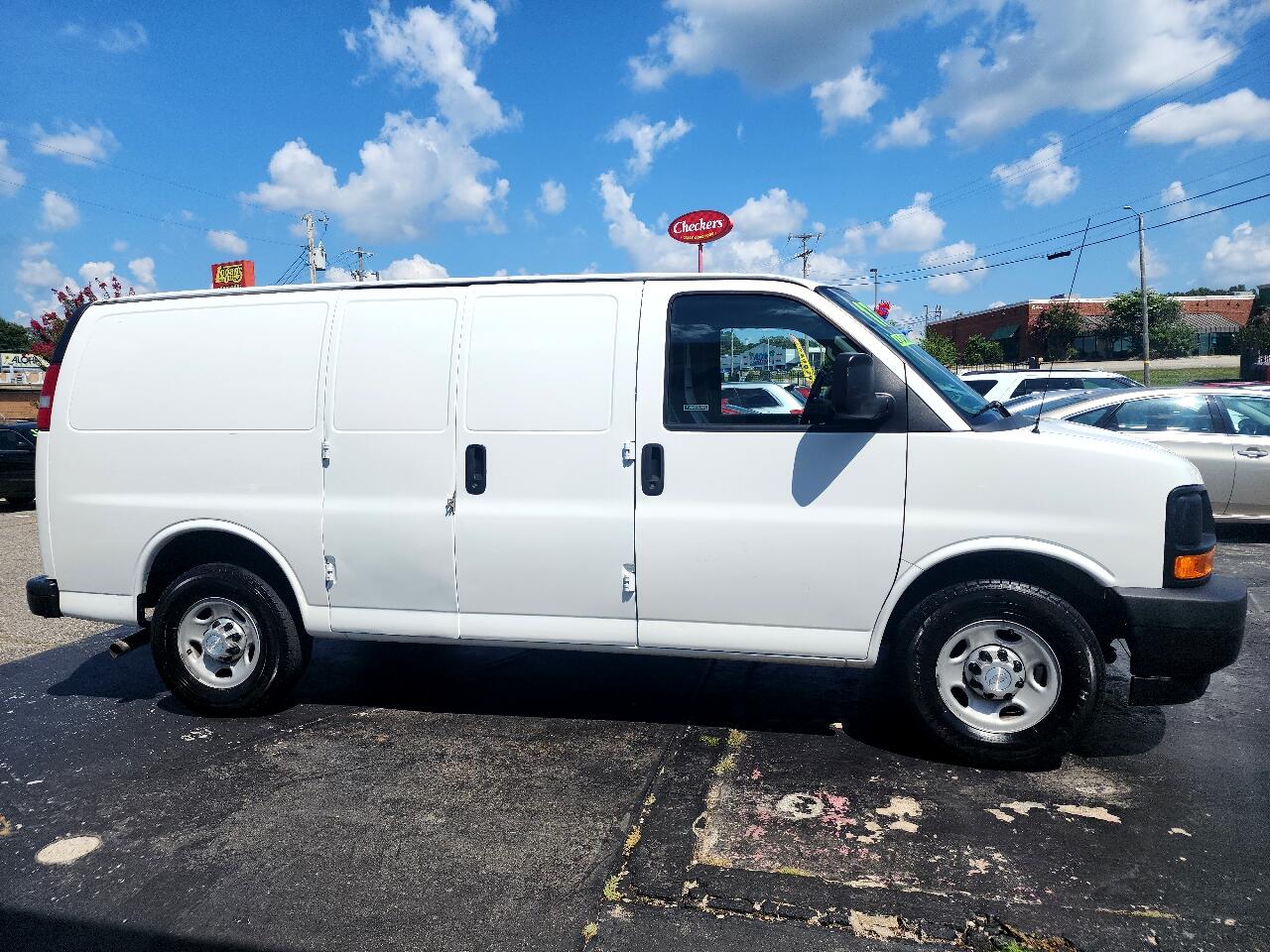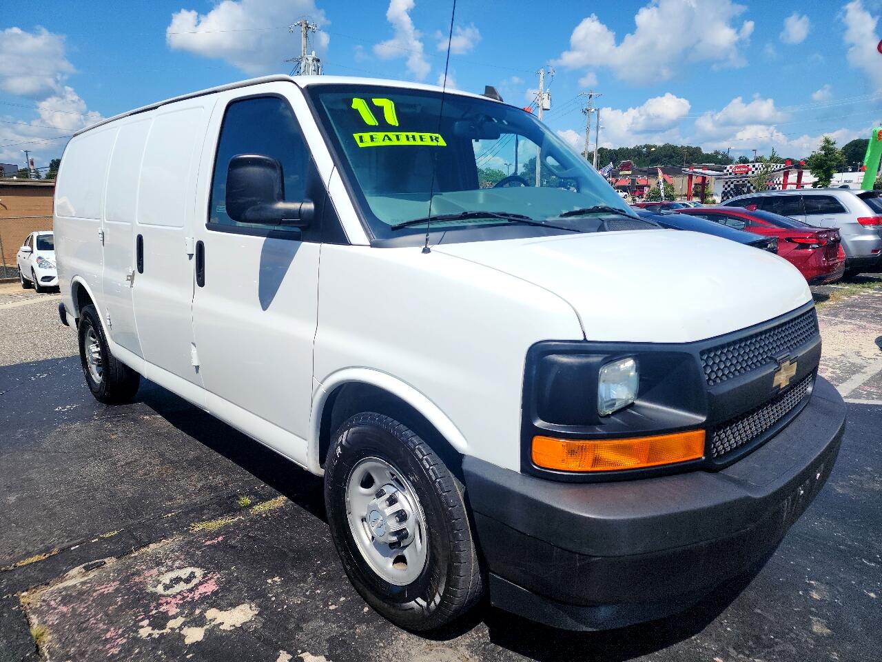 Hop into this White 2017 Chevrolet Express Cargo Van and take on your day with the powerful Vortec 4.8L V8 SFI engine roaring under the hood. With a rear axle ratio of 3.42, this van is ready to tackle any job you throw its way. Whether you're hauling cargo or on the go, the 600 cold-cranking amp battery and 105 amp alternator have your back. The exterior features a sleek standard body design with black bumpers and halogen headlamps that light up the road ahead. Inside, you'll find a spacious cabin with durable rubberized-vinyl floor covering and comfortable cloth-padded visors. Stay connected and entertained with the analog instrumentation and overhead lighting in the cargo area. With safety features like StabiliTrak and airbags, you can drive with peace of mind. And don't forget, a Carfax report is available for this van, ensuring you know its history. Get behind the wheel of this Chevrolet Express Cargo Van and experience the adventure waiting for you!